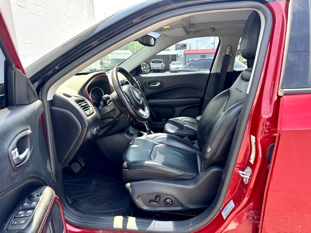 Chris Hiser Auto Sales is proud to present you with another True Market Priced Pre-Owned Vehicle. This 2017 Jeep New Compass Trailhawk is loaded with the following Factory Options:Cold Weather Group (Windshield Wiper De-Icer), Leather Interior Group (4-Way Power Lumbar Adjust, Heated Front Seats, Heated Steering Wheel, Leather w/Perforated Insert Bucket Seats, Leather Wrapped Steering Wheel, and Power 8-Way Driver/Manual 6-Way Passenger Seats), Popular Equipment Group (Auto-Dimming Rear-View Mirror and Remote Start System), Quick Order Package 2XE, 4-Wheel Disc Brakes, 4.334 Axle Ratio, 6 Speakers, ABS brakes, Air Conditioning, Alloy wheels, AM/FM radio: SiriusXM, Anti-whiplash front head restraints, Apple CarPlay/Google Android Auto, Automatic temperature control, Beats Premium Audio System, Block heater, Brake assist, Bumpers: body-color, Compass, Delay-off headlights, Driver door bin, Driver vanity mirror, Dual front impact airbags, Dual front side impact airbags, Electronic Stability Control, Four wheel independent suspension, Front anti-roll bar, Front Bucket Seats, Front Center Armrest w/Storage, Front dual zone A/C, Front fog lights, Front reading lights, Fully automatic headlights, Heated door mirrors, Illuminated entry, Knee airbag, Leather Shift Knob, Low tire pressure warning, Occupant sensing airbag, Outside temperature display, Overhead airbag, Overhead console, Panic alarm, ParkView Rear Back-Up Camera, Passenger door bin, Passenger vanity mirror, Power door mirrors, Power Front/Fixed Rear Full Sunroof, Power steering, Power windows, Premium Cloth/Leather Trim Bucket Seats, Radio: Uconnect 4 w/8.4" Display, Rain sensing wipers, Rear anti-roll bar, Rear seat center armrest, Rear window defroster, Rear window wiper, Remote keyless entry, Roof rack: rails only, Speed control, Split folding rear seat, Spoiler, Steering wheel mounted audio controls, Tachometer, Telescoping steering wheel, Tilt steering wheel, Traction control, Trip computer, Turn signal indicator mirrors, Variably intermittent wipers, and Wheels: 17" x 6.5" Polished/Black Pockets Aluminum.