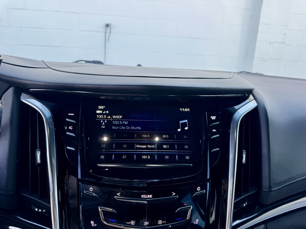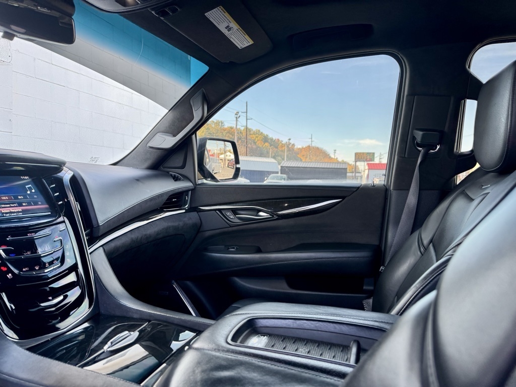 Chris Hiser Auto Sales is proud to present you with another True Market Priced Pre-Owned Vehicle. This 2017 Cadillac Escalade Platinum Edition is loaded with the following Factory Options:Driver Assist Package (Adaptive Full-Speed Range Cruise Control, Automatic Safety Belt Tightening, Electronic Powered Parking Brake, and Front & Rear Automatic Braking), Platinum Package (Cooled Console w/Covered Storage, Dual DVD Screens, Leather Wrapped IP/Console/Door, Microfiber Sueded Headliner, Platinum Sill Plates, Premium Floor Mats, Unique Exotic Wood, and Unique Grille Design), Preferred Equipment Group 1SD (Forward Collision Alert, Illuminated Door Handles, IntelliBeam Headlamps, Lane Change Alert, Lane Keep Assist w/Lane Departure Warning, Power Tilt-Sliding Sunroof w/Express-Open/Close, Power-Retractable Assist Steps, Rear Camera Mirror, Rear Camera Washer, Rear Cross-Traffic Alert, Rear Seat Entertainment System, Reconfigurable 4-Color Head-Up Display, Second Row Bucket Seats, Side Blind Zone Alert, and VAC Power 17" Disc Brakes), Theft-Deterrent Package (Inclination Sensor, Theft-Deterrent Alarm System, and Vehicle Interior Movement Sensor), 4WD, Jet Black With Jet Black Accents Leather, 16 Speakers, 2-Position Memory For Driver's Seat Adjuster, 3.23 Axle Ratio, 3rd row seats: split-bench, 4-Wheel Disc Brakes, A/V remote, ABS brakes, Adaptive suspension, Adjustable pedals, Air Conditioning, All-Weather 1st, 2nd & 3rd Row Floor Mats (LPO), Alloy wheels, AM/FM radio: SiriusXM, Apple CarPlay, Auto High-beam Headlights, Auto tilt-away steering wheel, Auto-dimming door mirrors, Auto-leveling suspension, Automatic temperature control, Black Front License Plate Bracket, Bodyside moldings, Bose Centerpoint Surround Sound System, Brake assist, Bumpers: body-color, CD player, Compass, Delay-off headlights, Driver door bin, Driver vanity mirror, Dual front impact airbags, Dual front side impact airbags, DVD-Audio, Electronic Stability Control, Emergency communication system: OnStar Protection, Exterior Parking Camera Rear, Front anti-roll bar, Front Bucket Seats, Front Center Armrest w/Storage, Front dual zone A/C, Front reading lights, Front wheel independent suspension, Fully automatic headlights, Garage door transmitter, Genuine wood dashboard insert, HD Radio, Headphones, Heads-Up Display, Heated & Cooled Front Bucket Seats, Heated door mirrors, Heated front seats, Heated rear seats, Heated steering wheel, Illuminated entry, Leather Shift Knob, Leather steering wheel, Low tire pressure warning, Magnetic Ride Control Suspension, Memory seat, Navigation System, NavTraffic, Occupant sensing airbag, Outside temperature display, Overhead airbag, Overhead console, Panic alarm, Passenger door bin, Passenger vanity mirror, Pedal memory, Power door mirrors, Power driver seat, Power Liftgate, Power moonroof, Power passenger seat, Power steering, Power windows, Radio data system, Radio: Cadillac CUE Info/Media Ctrl Sys w/Embd Nav, Rain sensing wipers, Rear air conditioning, Rear anti-roll bar, Rear audio controls, Rear reading lights, Rear window defroster, Rear window wiper, Remote keyless entry, Roof rack: rails only, Security system, Semi-Aniline Leather Seating Surfaces, SiriusXM Satellite Radio, Speed control, Split folding rear seat, Spoiler, Steering wheel memory, Steering wheel mounted audio controls, Tachometer, Telescoping steering wheel, Tilt steering wheel, Traction control, Trip computer, Turn signal indicator mirrors, Variably intermittent wipers, Ventilated front seats, and Wheels: 22" x 9" Premium Painted w/Chrome Inserts.